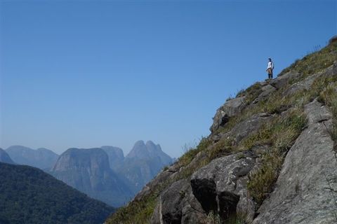 Bom, chegamos ao cume às 13h50, numa bela tarde de final de inverno. Visual indescritível com as montanhas de Petrópolis, Serra dos Órgãos e, ao nosso lado, Seio da Mulher de Pedra, Buraco do Ouro, Salinas, Morro do Carmos…luxo….
